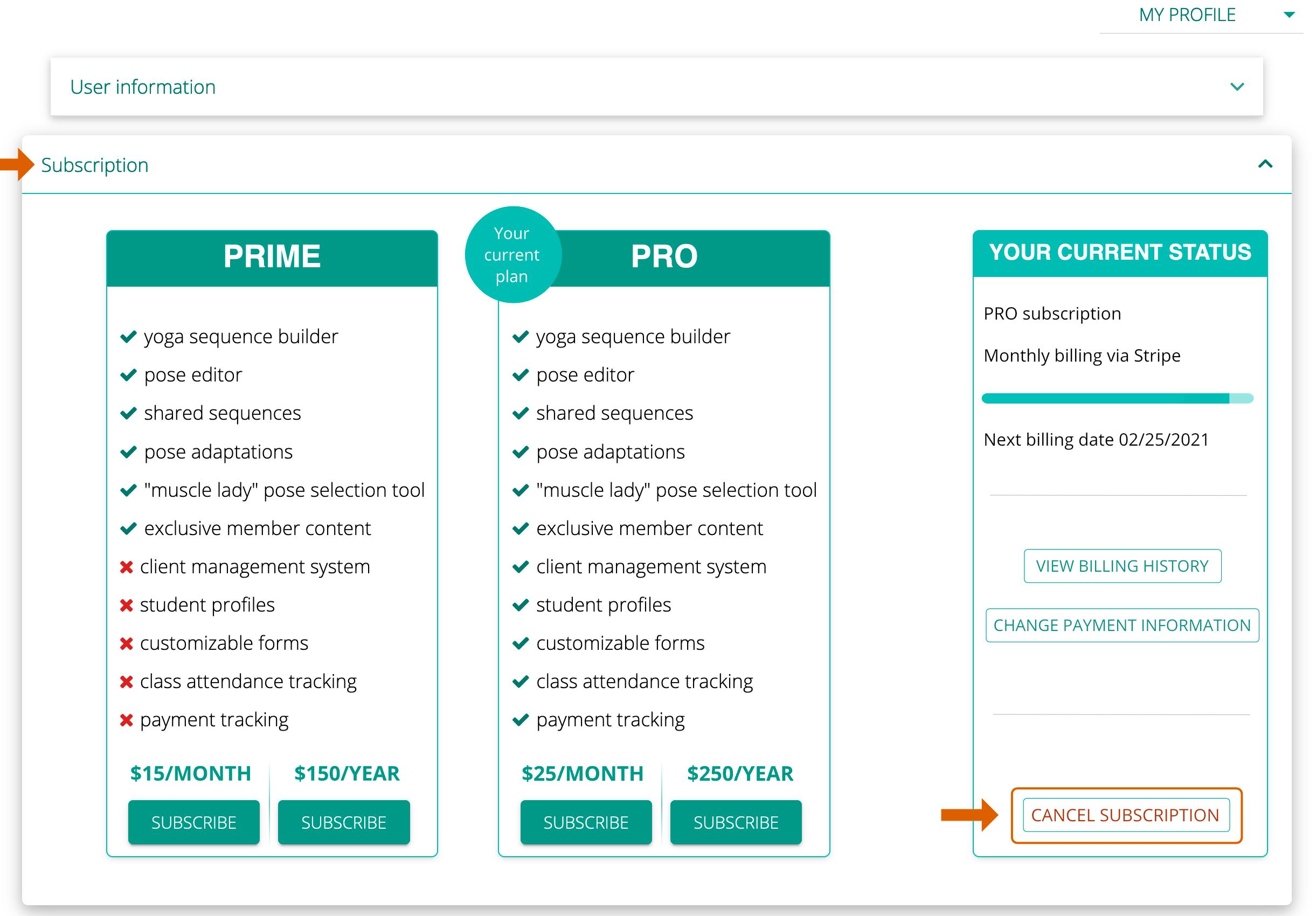 You can cancel your subscription at any time. Go to MY ACCOUNT – MY PROFILE.